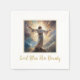 This paper napkin is shown in the standard cocktail size with an art print of Jesus.