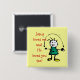This button features a stick figure with the words Jesus love me and He loves you too! background colour is able to be changed by customising this button. Fits all sizes , both round and square. Please check the sizes of the buttons carefully!