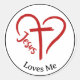 Jesus Loves Me Heart and Crosss Classic Round Sticker