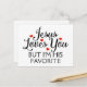Jesus Loves You But I'm His Favourite. Christian Humour Saying. Funny Religious Slogan. With little red hearts.