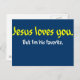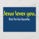 Jesus loves you. But I'm his favourite. Know someone who has a high opinion of themselves? You don't have to be a narcissist to enjoy this humourous phrase.