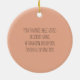Stunning mother and child image of the Madonna Virgin Mary holding baby Jesus surrounded by peach coloured roses, with your custom text above. Shown are the editable words, Forever Faithful. Reverse side allows you to either delete all text and leave the area blank, or type your favourite Bible verse, scripture, religious saying, or affirmation. You can also use this custom text area to write a personal meaningful message to the recipient. ***Please remember to either change or delete the back side text using the Personalise option, otherwise, the text shown in the sample will print.) This lovely two sided Christmas ornament, would make a wonderful gift for a CCD teacher, religion school teacher, religious leader, or religious friend or family member. This beautiful religious Christmas ornament would also make a wonderful party favour or gift for a Christening, Baptism, First Communion, or Confirmation. The text style and size are completely editable using the the Design Tool, which can be found in the Personalise section. You can even use the Design Tool to add a photo to the reverse side of the ornament! Other Christmas ornament styles available. #ReligiousGift #ReligiousOrnament #Jesus #Christian #Catholic From WebzPickz / GenerativeContent.
