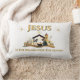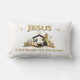 Jesus Nativity Christmas Accent Pillow designed with with a Manger Scene on a soft white background with gold colored stars and accents. The text includes: Jesus Is The Reason For The Season. The reverse is a matching gold background. Makes a wonderful expression of your Christian faith during this Holy Season.