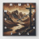 Jesus on Cross in Peaceful Mountains Square Wall Clock