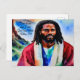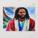 A watercolor painting featuring Jesus sitting on a mountain top and a bible scripture taken from Matthew 11:28.