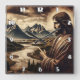 Jesus Pointing Towards Majestic Mountain Landscape Square Wall Clock