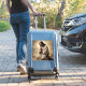 The stick looks amazing. Unfortunately, it would not stick on our suitcase as it was textured. When we found a non-textured (smooth) suitcase, the sticker stuck and looks great. The printing looked awesome.