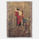This is a photo of the centre portion of the Resurrection Tapestry displayed in the Vatican in Rome, Italy. Depicts Christ in the doorway of the open tomb. Note the concrete door is laying on the ground under his foot.