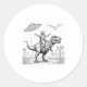Jesus Riding Dinosaur T-rex Ufo Hunting Alien Sci- Classic Round Sticker