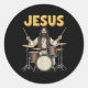 Jesus Rocks Music Funny Christian Drummer Design Classic Round Sticker