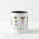 Kids of different colours come together on this mug with the words "Jesus said Love Everyone." In this version the kids have no faces to emphasize ethnical differences.