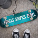 Jesus Saves Bro. Abstract Blue Haze Skateboard