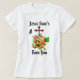 Jesus Save's t Shirt has customisable text for you to change if you want to and it has a vintage photo of a cross with a flowers on it and a green and a rainbow butterfly flying around the outside of the cross.you can change the colour to what you want the shirt to be