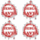 This item has a simple message: "Jesus Saves" in front of a crown of thorns; topped with a cross, and dripping a drop of the Precious Blood of Christ.