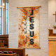 A striking seasonal tribute to John 14:6, this design blends bold vertical typography with flowing script and warm autumn leaves. A visual declaration of faith, truth, and eternal direction.