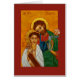 Saint Joseph the Worker is depicted in this icon with Jesus as a child. Saint Joseph is the patron of the Universal Church, the dying, fathers, carpenters, and social justice. Also, his intercession is often sought for intentions of selling homes and finding employment.