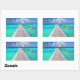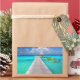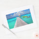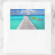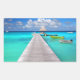 Rectangular photo sticker with a wooden jetty with some colourful boats and a thatched hut in the turquoise blue lagoon of the tropical, Pacific island Rangiroa, close to Tahiti and Bora Bora in French Polynesia.