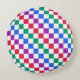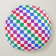 A vibrant chequerboard pattern with alternating neon yellow and black squares creates a striking geometric design, conveying a bold and energetic tone.