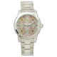 These dramatic watches add a touch of flair to life. This one is from an abstract in jewel colours with a romantic theme with an updated but old fashioned look in greens, pinks and golds. Counter clockwise numbers for people who are always short on time - or just for people who like to be a bit different!