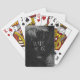 Opt for a striking, glitz and glam look by using the pieces in this wedding suite as shown, with jewels cascading off the diamond-encrusted palm leaves or delete the jewel layers for a slightly more conservative look. This set features leaves in shimmering silver against a dark charcoal, textured background. The wedding playing cards shown here have elegant 'We're All In' text, a border of sparkling leaves and the bride and groom's initials and wedding date. Easily enter your details using the provided template. View the collection link on this page to see all of the matching items in this beautiful set or search ID830 to see additional colour options for this design.