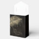 Opt for an Old Hollywood glam look by using the pieces in this wedding suite as shown, with jewels cascading off the diamond-encrusted palm leaves, or delete the jewel layers for a slightly more conservative look. This set features leaves in shimmering gold against a textured background the rich colour of black coffee. The wedding 'Love & Thanks' favour box shown here has a border of sparkling leaves, an elegant Serif font with the bride and groom's name and wedding date. Easily enter your own wedding details using the provided template. View the collection link on this page to see all of the matching items in this beautiful set or search ID830 to see additional colour options for this design.