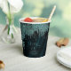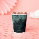 Opt for a striking, glitz and glam look by using the pieces in this wedding suite as shown, with jewels cascading off the diamond-encrusted palm leaves or delete the jewel layers for a slightly more conservative look. This set features leaves in shimmering pastel teal against a darker teal, textured background. The wedding paper cup shown here has a border of sparkling leaves, a personal 'Thank You' message and the bride and groom's names and wedding date. Easily enter your details using the provided template. View the collection link on this page to see all of the matching items in this beautiful set or search ID830 to see additional colour options for this design.