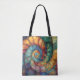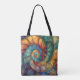A spiral shell fractal in jade green, sapphire blue, rich gold, and more precious gem colours creates a beautiful image on this tote bag.
