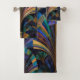 Jewel Tone Peacock Blue Purple Gold Art Deco Bath Towel Set