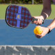 A rich sapphire blue base is crisscrossed by bands of deep black, ruby red, and emerald green in this jewel-toned plaid that combines trendy colours in a classic and cosy pattern perfect for fall. Customise the monogram with your initial to create a unique paddle for your pickleball games.