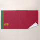 Chic jewel tone bath towel set, with the hand towel done in a rich purple like Amethyst the wash cloth in an emerald green and the bath towel in ruby red, with a purple, gold and green stripe, across the bottom. All three towels have a gold tone text area, with one letter monograms ready to personalise.