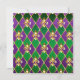 jewellery, background on Mardi Gras of purple and green rhombus, decorated gold lilies.