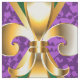 jewellery, background on Mardi Gras of purple and green rhombus, decorated gold lilies.