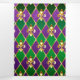jewellery, background on Mardi Gras of purple and green rhombus, decorated gold lilies.