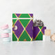 jewellery, background on Mardi Gras of purple and green rhombus, decorated gold lilies.