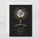 This magnificent and chic wedding photo Thank You card is an up-to-date design, with the couple's photo surrounded by concentric circles, reminiscent of a wire choker. The design is further adorned with a leaf ornament situated at the lower centre in gold.
