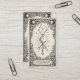 Create a distinctive brand identity with this vintage celestial jewelry maker business card, featuring an elegant mystical illustration of a crescent moon pendant surrounded by delicate stars and celestial details. The ornate tarot-inspired frame adds a timeless antique aesthetic that beautifully complements handmade jewelry and artisan craftsmanship.