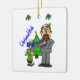 Here's a whimsical Chrismukkah ornament that features a Jewish man with holly on his kipper and mistletoe over his head. One of Santa's elves is bringing him a Christmas gift. On the back, personalise this with the current year or a family name? Designed by Sheila Cicchi, Brownielocks.com, All Rights Reserved.