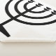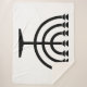 This design features an illustration of a menorah, used by Jewish people to celebrate the eight-day holiday of Hanukkah. The menorah is a nine-branched candelabrum that is lit during Hanukkah. Eight of the nine branches hold lights (candles or oil lamps) that symbolize the eight nights of the holiday; on each night, one more light is lit than the previous night, until on the final night all eight branches are lit. The ninth branch holds a candle, called the shamash (which means "helper" or "servant"), used to light the other eight. The Hanukkah menorah commemorates, but is distinct from, the seven-branched menorah used in the ancient Temple in Jerusalem