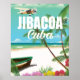 Cuba retro vacation travel poster, Sandy Cuban beach holiday poster to Jibacoa beach.