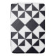 A bold, high-contrast geometric pattern featuring striking black and white triangles that create a dynamic and modern visual effect. It's symmetrical and sharp, giving a clean, contemporary feel, while the triangular shapes form an eye-catching, almost jigsaw-like composition. This minimalist design is perfect for adding a touch of modern elegance to home decor, fashion, or accessories, making any product stand out with its timeless black-and-white palette.