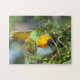 Customisable jigsaw puzzle of a yellow weaver bird building a nest.
