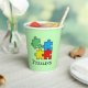Jigsaw Puzzle Pieces Design Paper Cup with customisable background colour and text