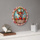 Get ready to jingle all the way through the holiday season with this absolutely charming Christmas wall clock! The centerpiece features an adorable reindeer, sporting a cosy red scarf and a festive red and green knitted hat. With a wide, happy grin, the reindeer holds a rustic wooden sign proclaiming "JINGLE ALL THE WAY." The scene is further enhanced by sweet candy canes, brightly wrapped gifts, and twinkling string lights with holly and bells. Framed by a classic red and white plaid border, this clock captures the pure joy and whimsical spirit of Christmas, making it a delightful addition to any festive home.