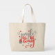 Jingle All The Way Christmas Bells Tote Bags features the text "Jingle all the way" in silver and red typography decorated with silver stars and bells. Perfectfor family and friends for Christmas and the holidays. Created by Evco Holidays www.zazzle.com/store/evcoholidays
