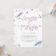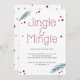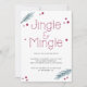 Whimsical and simple Christmas party invitation template card featuring illustrations of holiday foliages including pine tree leaves and red berries. It says "Jingle & Mingle" at the top in cute hand drawn font.