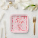 Jingle and Mingle! Whimsical hand drawn doodle Christmas party plates in pink and red.