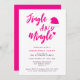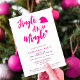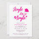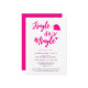 Modern Christmas holiday Jingle and Mingle party invitation featuring a trendy handwriting typography script, a little heart, and a Santa hat in trendy hot pink.