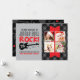 Turn up the volume on your greetings with this Jingle Bell Rock design, featuring bold red and gray lettering, a black electric guitar and modern plaid border framing your 4 photo collage; personalize the year, greeting, and family name for a fun, music-loving holiday hello.