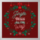 An Elegant and Modern Vintage Christmas Poster features a snowy background, snowflakes, sleigh bells, ribbons, ornamental flourished lettering, and mistletoe botanical garland theme to represent the best of the holidays. It is inspired by the Christmas songs of Christmas past of the lyrics “Jingle All the Way” and is also a great way of expressing Holiday Cheer for those you care. Created with one-of-a-kind designed lettering and illustration for those who just love Unique and Novelty Styles! Designed by Katrina Sutton.