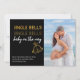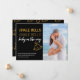 Personalised, all-in-one Christmas Card and Pregnancy Announcement. This chic and stylish design, in black and gold, is set up ready for you to add your photo and custom greeting, your names and when baby is expected. The wording reads "Jingle Bells, Jingle Bells, Baby on the Way" in handwritten script and modern LED light style typography. It has a black background with gold bells and hearts and plenty of room for your custom message. Please browse our store for alternative designs.